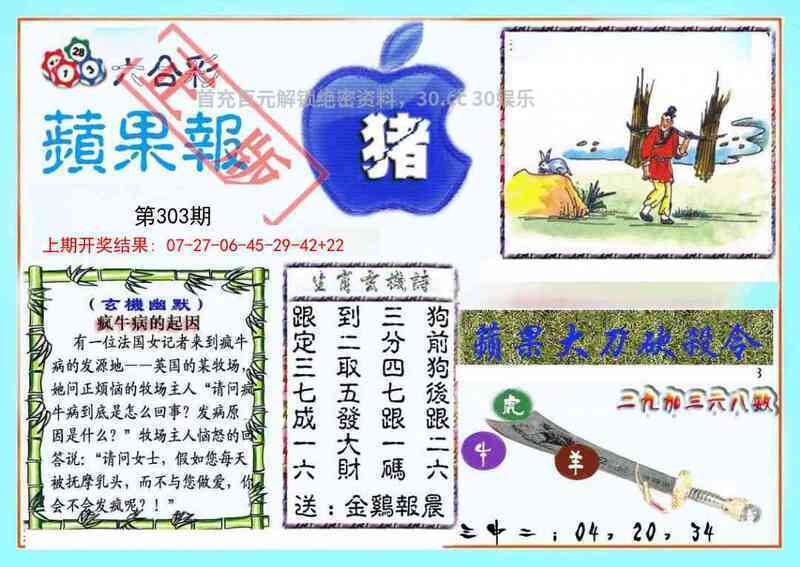 | 304期:平特一尾【3333】开:猪43中 | |||